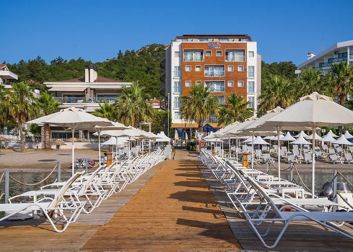 Offering a Turkish bath, a sundeck, and a shared lounge, the beachfront Cettia Beach Resort Marmaris is ideally located 3.9 km from Dancing Fountains. Featuring 103 rooms with views of the sea, the 4-star hotel is around a 20-minute walk from AquaDream Water Park.